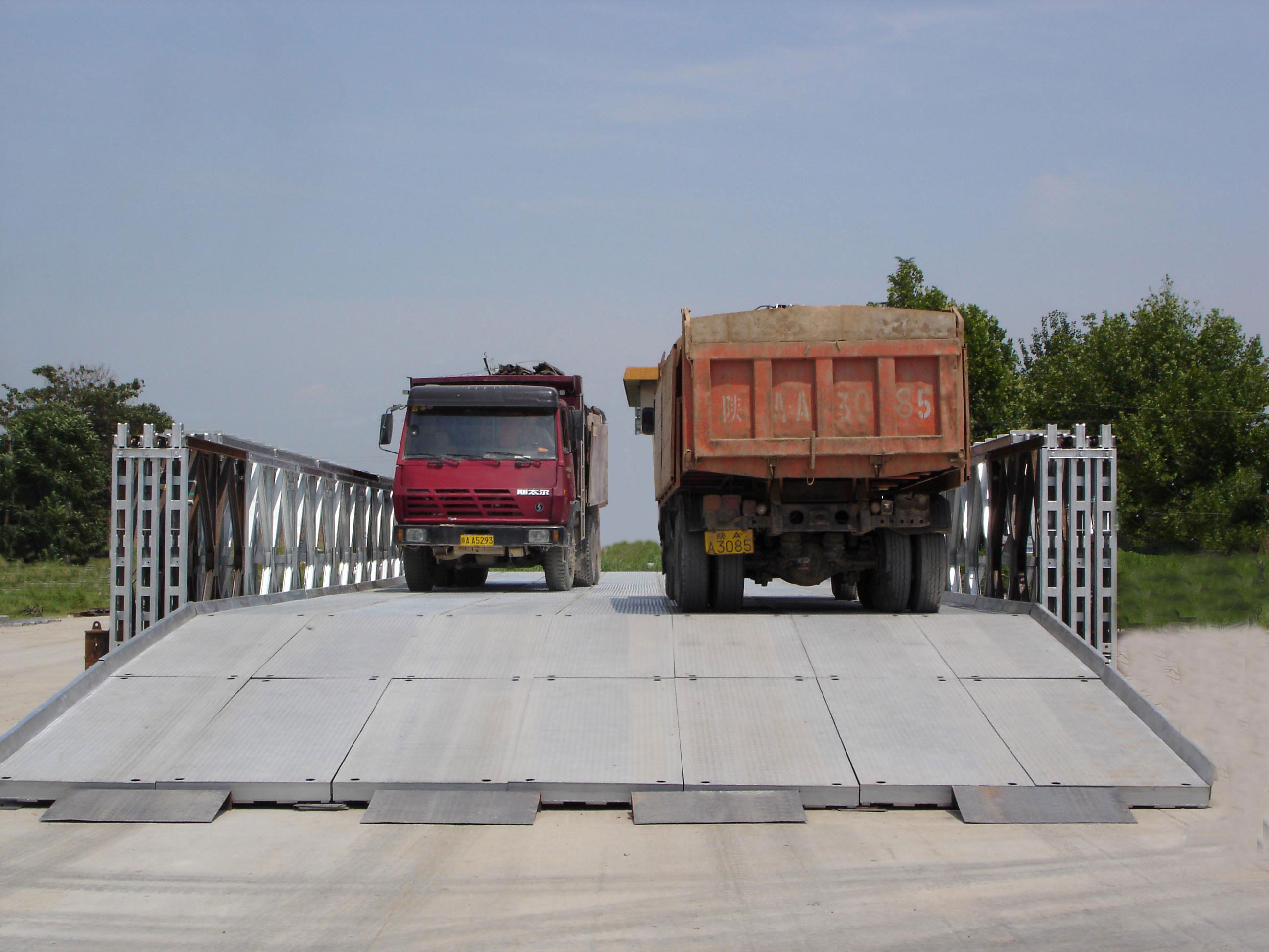 200型雙車(che)道貝雷鋼橋(有兩(liang)端橋頭搭板) Bailey bridge (CB-200, double-lanes, approach slabs are set at both bridge ends)